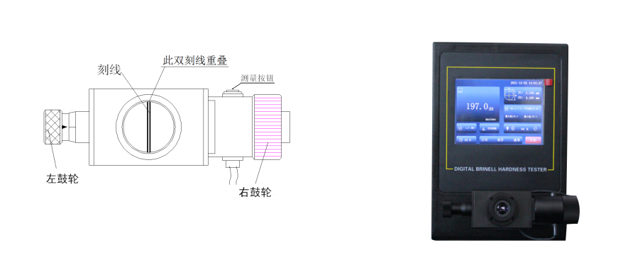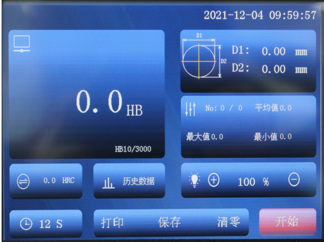 本機(jī)試驗過程LCD觸摸屏顯示,壓痕可在儀器上通過測微目鏡直接測量,并能在LCD觸摸屏顯示屏顯示壓痕的直徑,砝碼加力。