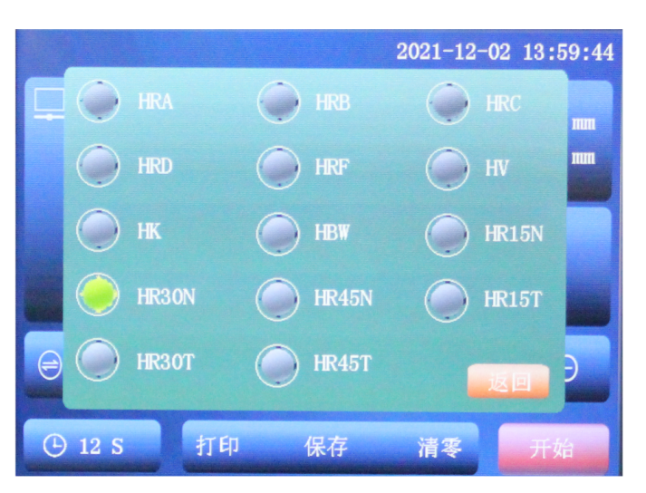 HRA、HRB、HRC、HRD、HRF、HV、HK、HBW、HR15N、HR30N、HR45N、HR15T、HR30T、HR45T |